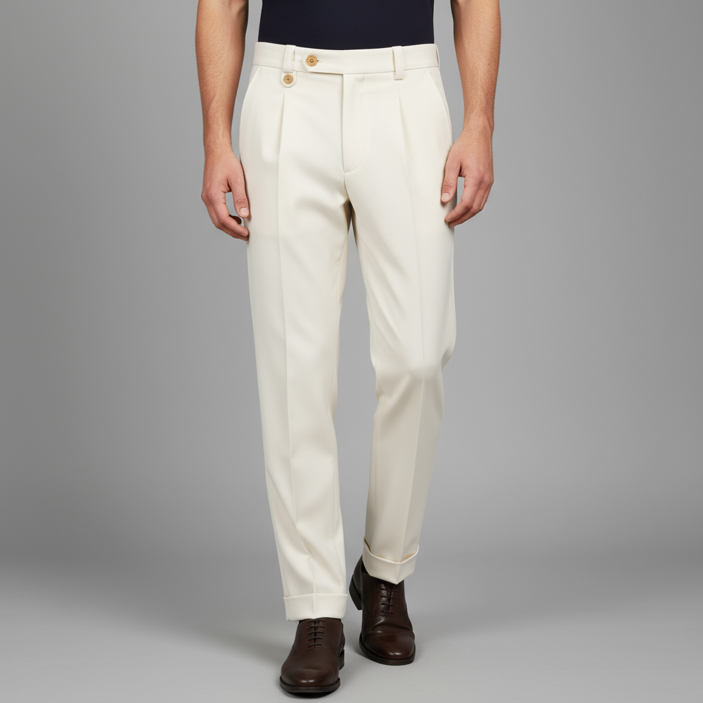 Ajoutez Pantalon Homme à Pinces Taille Haute à votre panier et profitez d’une pièce maîtrisée : taille haute flatteuse, pinces élégantes et finitions précises pour un look irréprochable en toute circonstance.