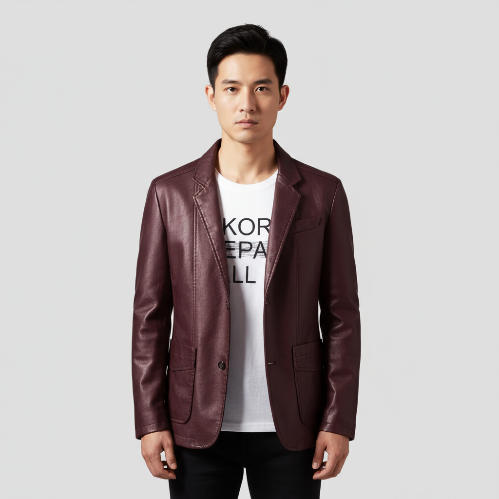 Découvrez Veste Homme en Cuir Zippée : une veste à l’allure contemporaine, confectionnée dans une matière souple à la finition lustrée. Sa coupe structurée et son col à revers dessinent une ligne nette, élégante sans en faire trop—parfaite de la ville au soir.