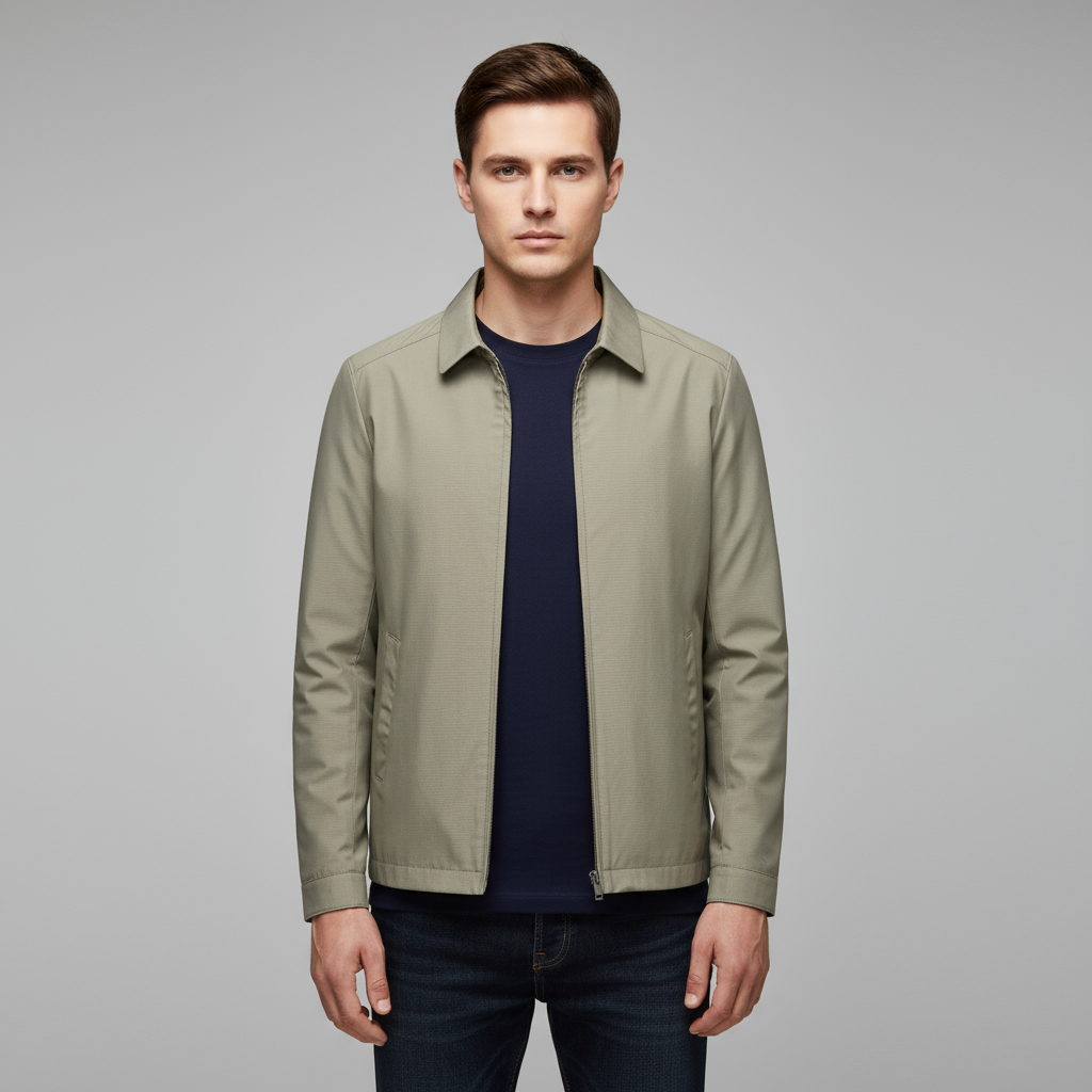 Optez pour Veste Homme Zippée Imperméable | Col Pointu : une pièce smart casual en tissu déperlant, pensée pour la mi-saison. Sa ligne épurée, son col pointu et sa fermeture zippée discrète signent une allure moderne, facile à porter du bureau au week-end.