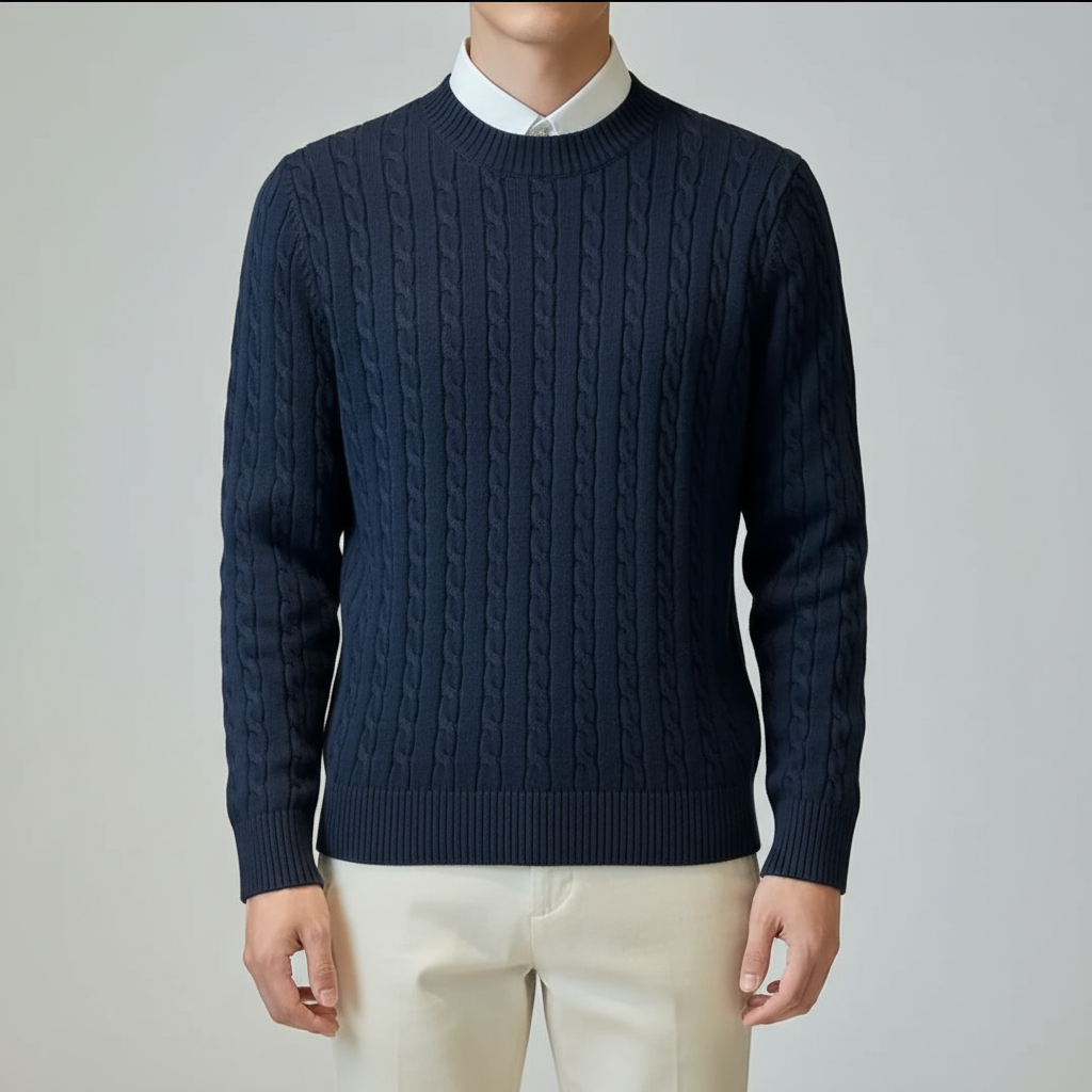 Découvrez Pull Homme Maille Torsadée | Col Rond : une maille douce et extensible qui conjugue confort et élégance sobre. Parfait pour les journées fraîches, il s’intègre avec naturel à vos tenues smart casual comme à vos looks du week-end.