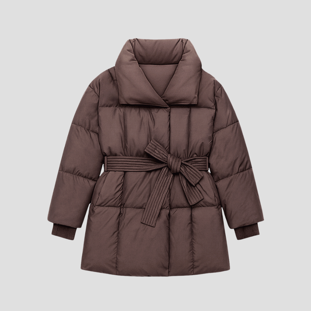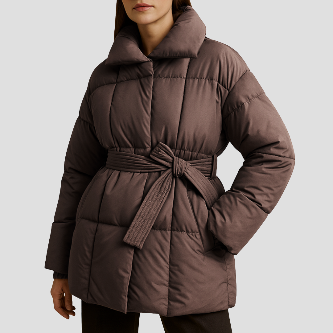 Chaleur élégante, taille soulignée — la doudoune ceinturée qui affine la silhouette