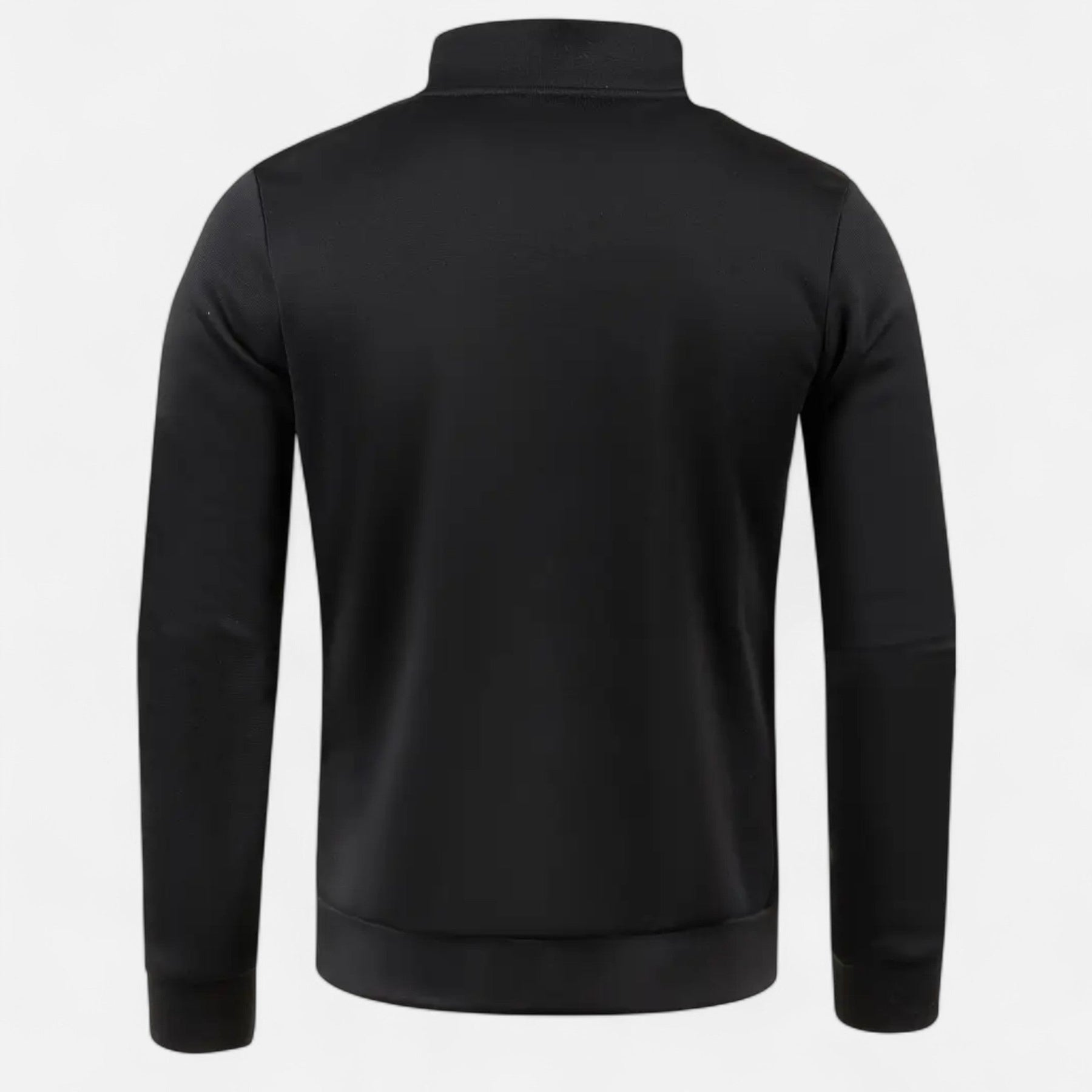 Smart casual : chemise oxford, chino et derbys — portez le zip semi-fermé pour une ligne nette.